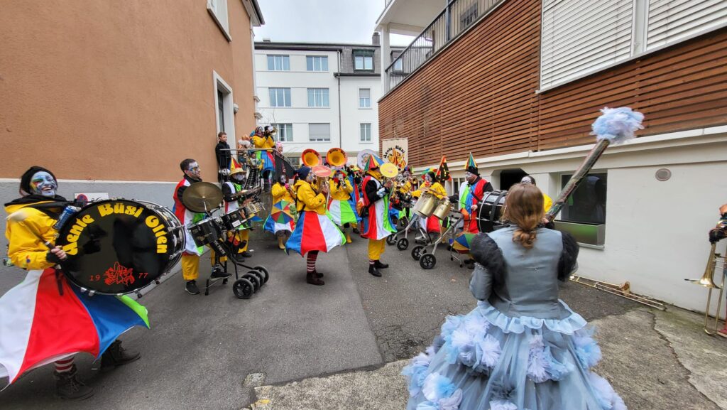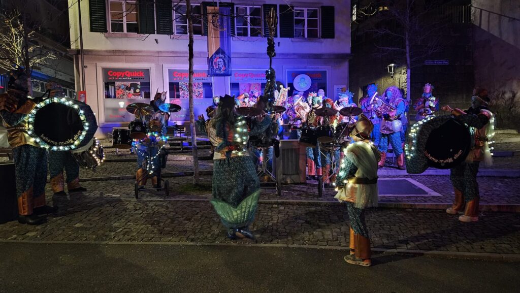 Weil wir unsere drei ersten Posaunen vorübergehend an eine Bank verpfänden müssen, gibt es am Nachmittag praktisch keine Bohème-Auftritte. Das holen wir dann aber am Abend nach. Mit vier Platzkonzerten können wir viel Publikum in die Stadt locken oder zumindest dort halten. Schliesslich gässlen wir um Mitternacht mit „Lift You Up“ der eigenen Auflösung entgegen.