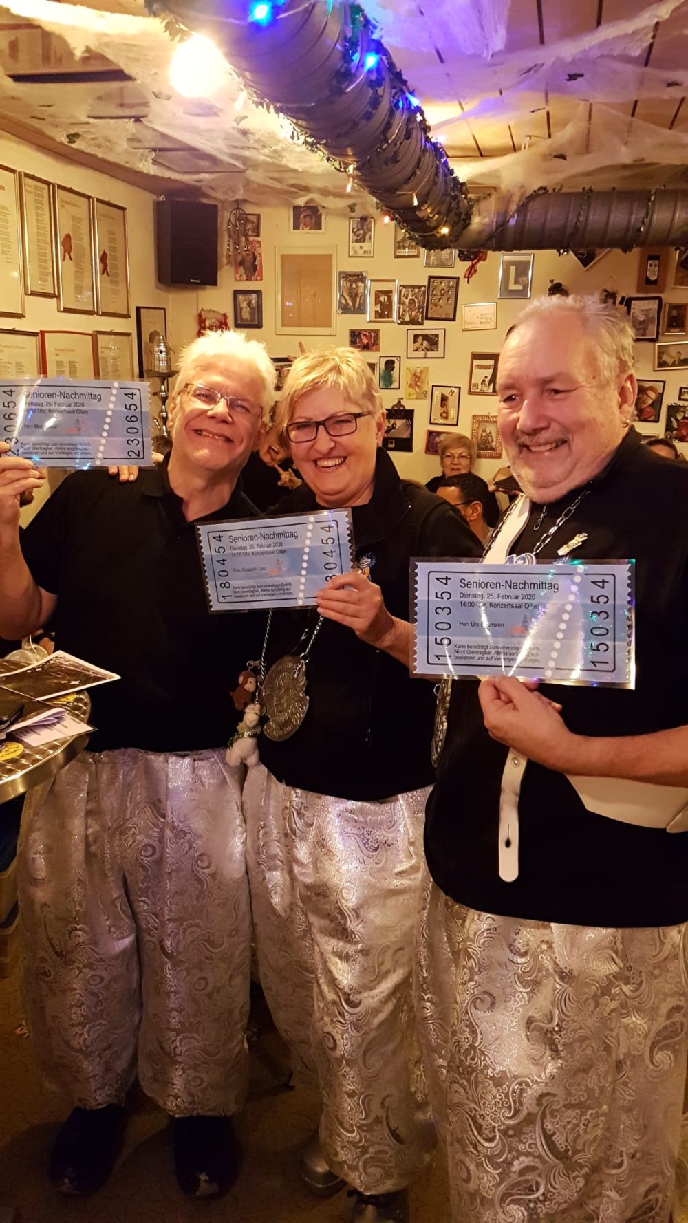 Zurück im Zunftlokal ging es dann mit der Hilarisitzung zum hochoffiziellen Teil. Mit Angie und Marocco wurden zwei VVF geehrt, wobei unser „Präsi“ Marc hierbei deren Gemeinsamkeiten und die fast Mafiähnlichen Clan-Verbindungen der beiden im Verein herausstrich. Als Highlight darf man sicher das Geschenk an unsere „Rentner“ Lisi, Urs und Mags bezeichnen. Unser Vorstand hat weder Kosten noch Mühen gescheut und den drei AHV-Bezüger je einen Eintritt zum Senioren-Nachmittag geschenkt. Neben weiteren Verdankungen unter anderem an Richard Rünftel (Gründungsmitglied ?), machte uns auch noch eine Delegation der Fuko ihre Aufwartung und überbrachte der Bohème die besten Grüsse.