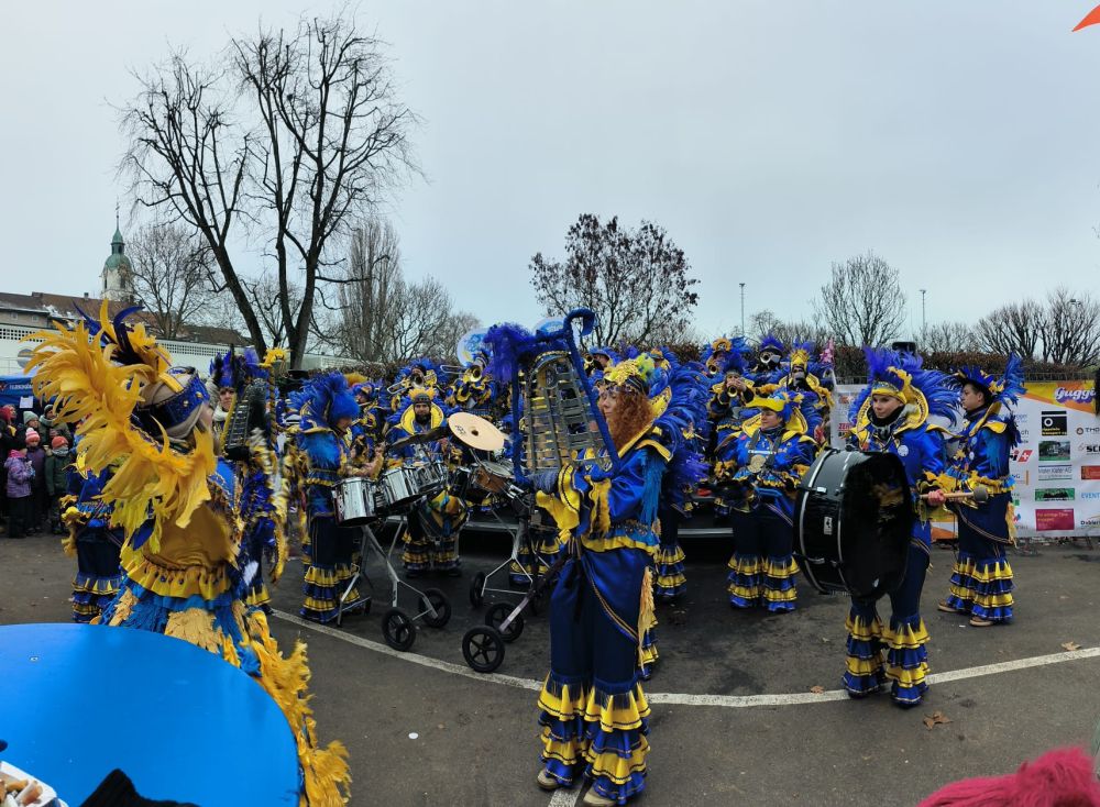 Mit dem Dunkelwerden machen wir uns bereit fürs erste «Gässlen». In Formation spielen wir uns zum Ildefondsplatz und hören uns die lyrischen Worte der Fasnachtsoberhäupter an. Im Anschluss gibt die Bohème dort ein sattes Konzert und marschiert zurück. Vor dem unmusikalischen Abendprogramm zwängen wir uns aber kurz ins Kolpinghaus und unterhalten die Las Furmiclas, welche sich von Sweet Cärolein kaum erholen können.