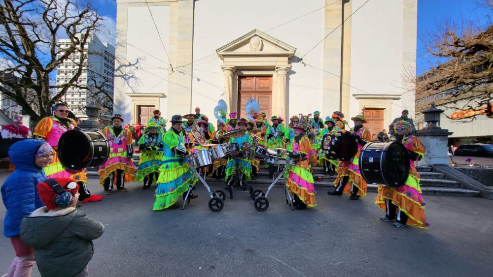 Als letzter öffentlicher Programmpunkt stand nun noch ein Auftritt an der Guggilari in der Schützi an. Die Temperaturen waren tief und weder wir noch die Zuhörer wurden bei unserem Auftritt so richtig warm.