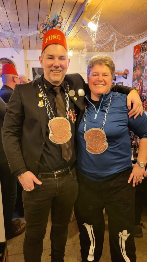 Während der Sitzung stattete uns auch dieses Jahr eine Zweierdelegation des Fukorats einen Besuch ab. Für ihre Verdienste in der Laternenmalerei wurden Francesca und Sandra „Urmel“ von der Fuko geehrt.