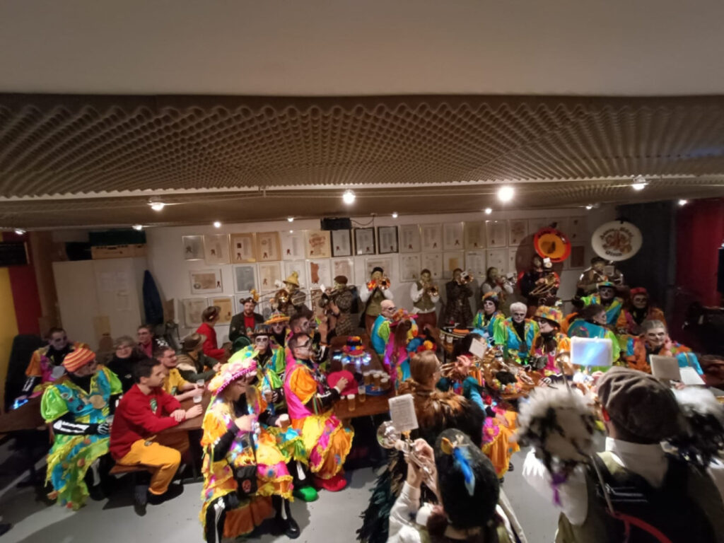 Um 17:00 Uhr war bereits wieder Besammlung zum Brushen (statt Schminken) im Bohèmehaus. Es folgte ein Auftritt mit und für unsere Freunde der Altstadt Zunft zu Olten im Kapuzinerkloster, welches im Mai 2024 nach rund 400 Jahren von den Ordensbrüdern verlassen wird.