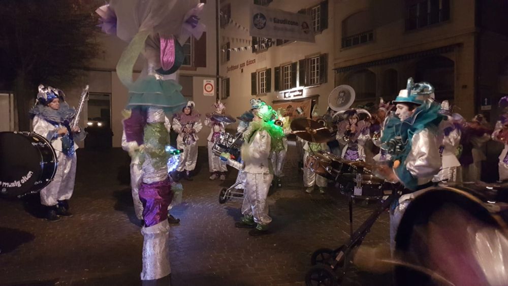 Um 20.00 Uhr trafen wir uns zum Einspielen im Bohèmehaus. Wir hatten zwei offizielle Auftritte. Einer im HC Zelt und einer auf der Chelestäge. Wir gaben unsere Stücke wiederum zum Besten und man merkte, dass wir einfach riesen Spass am Musik machen haben. Zwischen den beiden Auftritten hielten wir im neuen Zunftlokal der Rätschwyber ein Ständchen. Auch konnten wir ein anwesendes Geburtstagskind mit unserer Musik beglücken. Anschliessend gab es etwas zu trinken und für die, die wollten, ein feines Chili con Carne.
