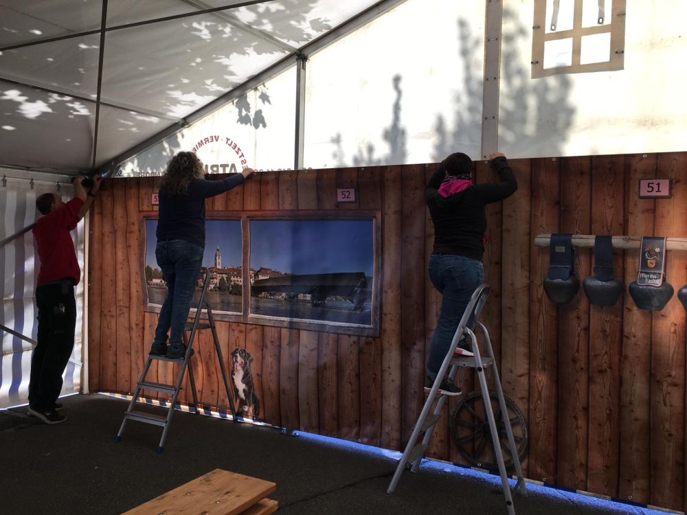 Die Bohème-Musig hat sich auch dieses Jahr als eingespieltes Team präsentiert. Unsere Aufbau-truppe hat am Donnerstag in rekordverdächtigen 1.5 Stunden die drei Zelte aufgestellt und bis zum Abend in eine heimelige Käsehütte verwandelt. Die Vorbereitungen sowie der Aufbau verliefen weitgehend reibungslos, wäre da nicht der liebe Steamer gewesen. Nun ja, mit einem defekten Gerät lassen sich beim besten Willen und aller Motivation keine Kartoffeln kochen – eine weitere Steamer-Story geht in die Mio-Geschichte ein.