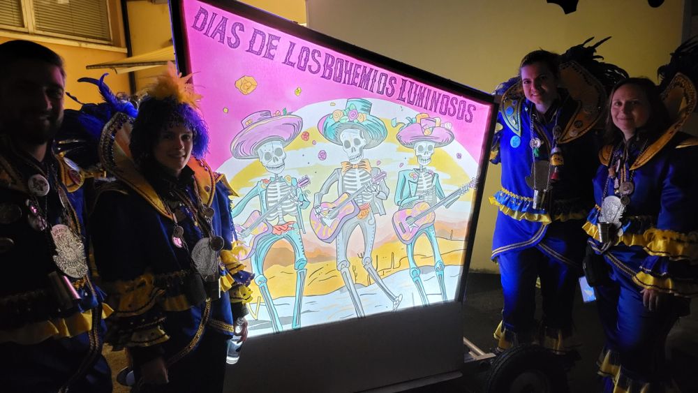 Um 20 Uhr marschierten wir in gewohnter Formation Richtung Alte Brücke, um den Obernarren «Andi dr 1. am Sax» in Empfang zu nehmen. Wie jedes Jahr war die Brücke mit Närrinen und Narren gut gefüllt. Von Weitem sahen wir den Obernarr mit seiner Entourage auf den Pontonierschiffen das Ziel anvisieren. Dann aber machten die Schiffe kurz vor der Brücke noch 2 – 3 Ehrenrunden, da sie sonst zu früh gelandet wären. Auf dem Ildefonsplatz war der Turm farbig beleuchtet und der Obernarr gab seine Proklamation mit seinem Sax zum Besten. Nach dem Anstossen mit Weisswein wurden von den Guggen noch ein paar Lieder gespielt. Und schon war es wieder Zeit ins Bohème Haus zurückzukehren, wo wir mit Hot Dogs unseren Hunger stillen konnten. Es war ein toller Auftakt für die diesjährige Fasnacht.