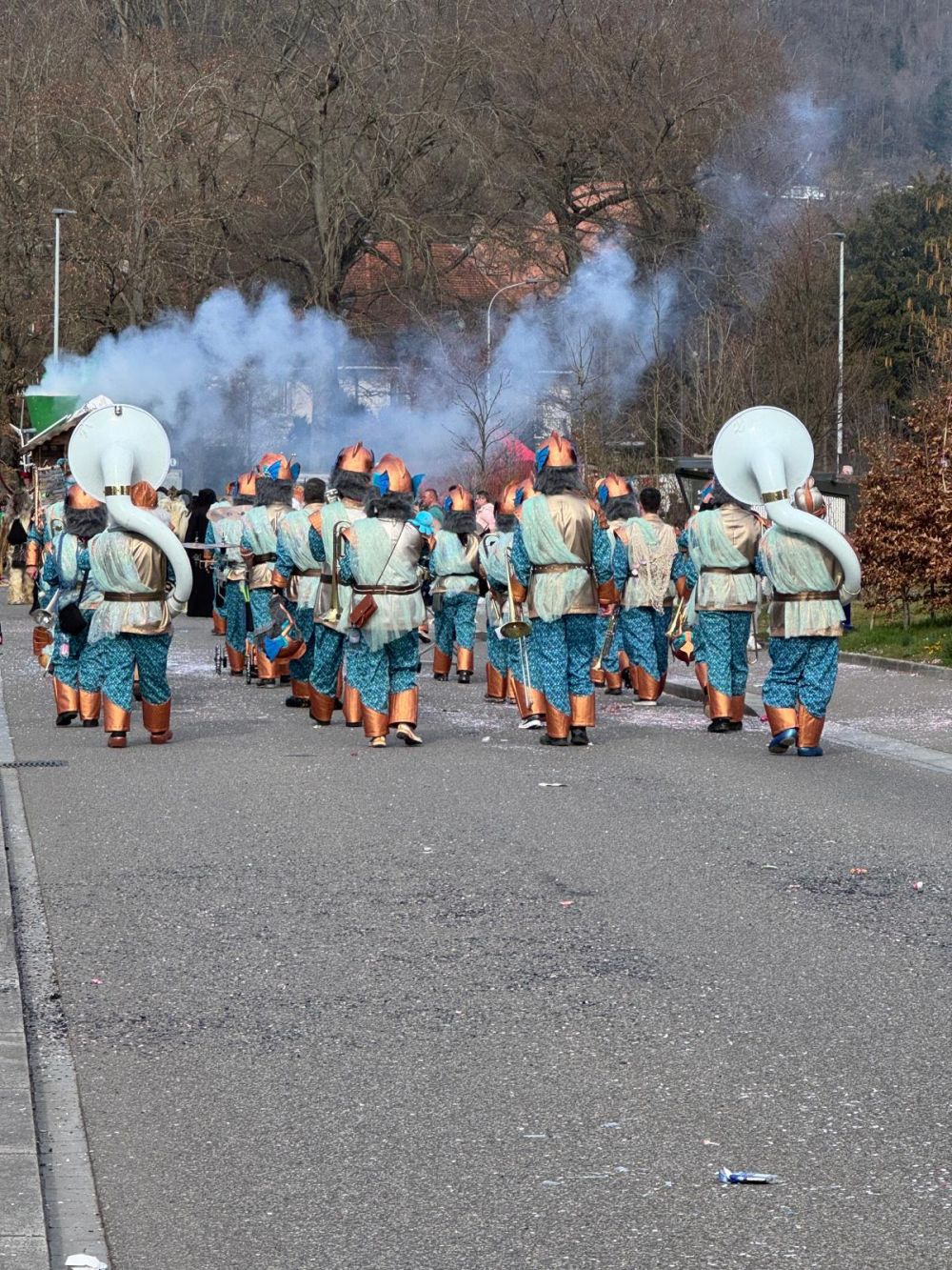Als wir dann komplett waren, durften wir die Aargauer mit einem Auftritt in der Altstadt begeistern. Dieser Auftritt war nicht unbedingt ein Aufwärmen für den Umzug, sondern viel mehr ein Einheizen! Es schien, als hätten wir unseren Job an der Oltner Fasnacht mit Bravour gemeistert und den Winter vertrieben.