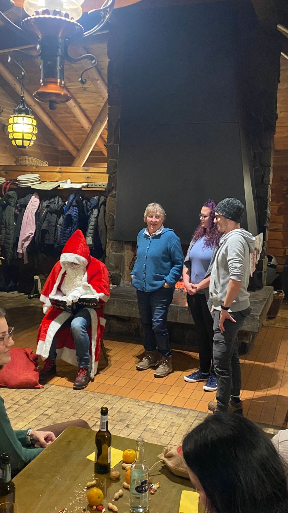 Einem schien unser gutes Fest nicht zu entgehen, denn plötzlich stand der Samichlaus da. Als würde er die Bohèmes persönlich kennen, konnte er über einige etwas sagen. Er plauderte sogar Dinge aus, die kein einziger Bohème wusste… Doch er ist gut gelaunt und verteilt fleissig Säckli, bis auch die letzten Bohèmes aufatmen können – gäu Katja 😉