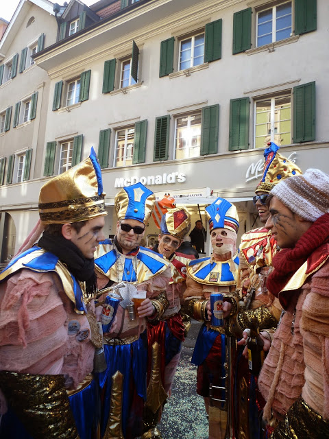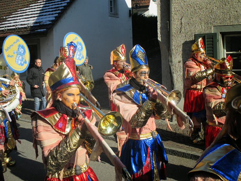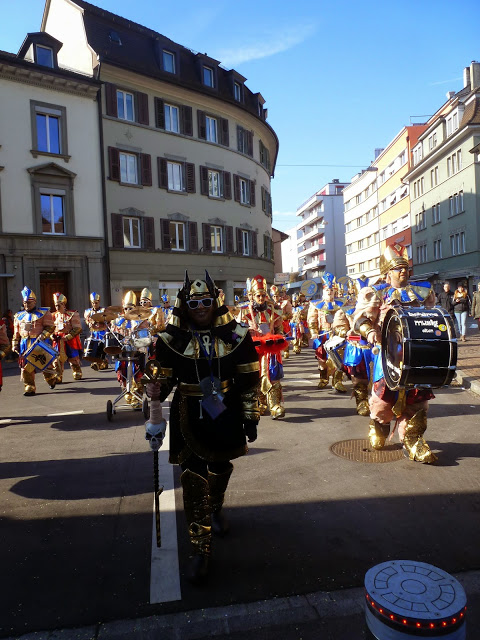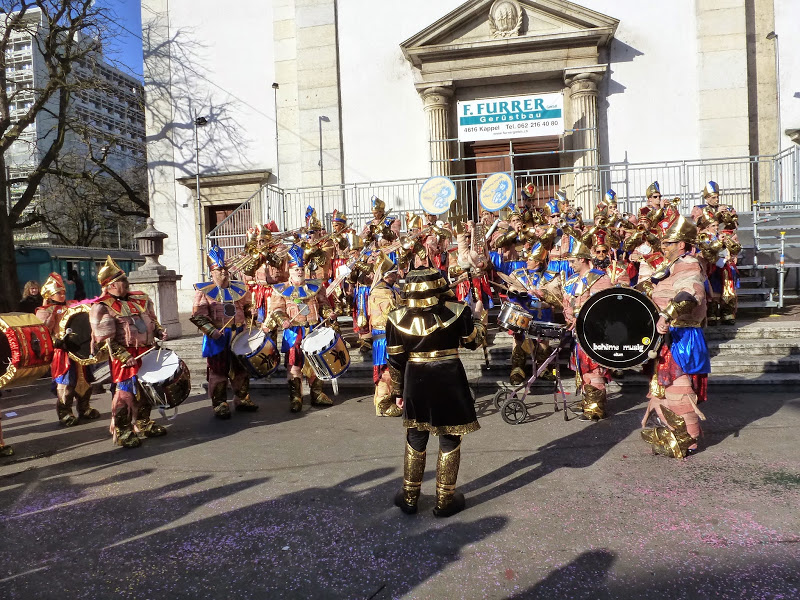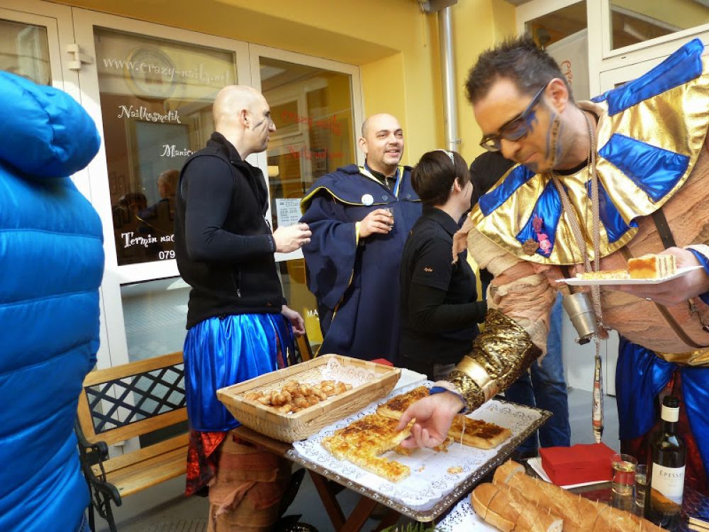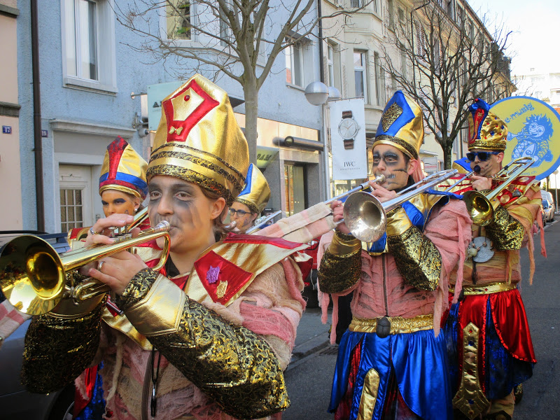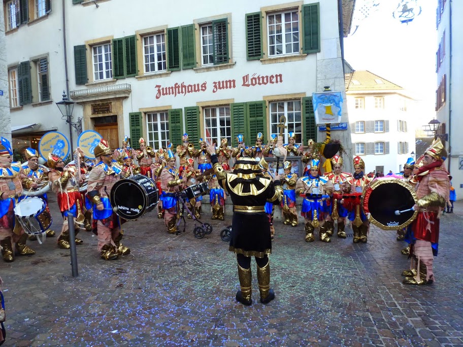 Bei schönstem Wetter und angenehmen Temperaturen spielten wir auf den Bühnen in der Altstadt und hatten auch endlich mal Zeit den anderen Guggen etwas zuzuhören. Der Besucheraufmarsch war recht ansehnlich, der Sonnenschein lockte viele auf die Kirchgasse. Leider reagieren Mumien schlecht auf zu grelles Sonnenlicht…