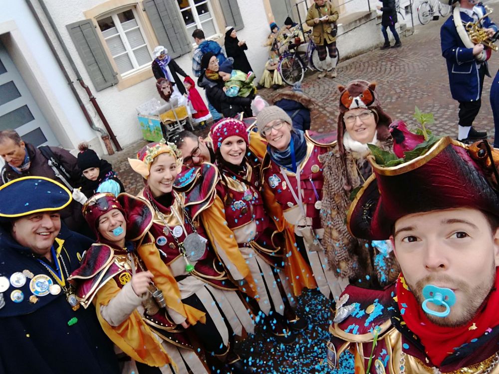 Bereits um 13:15 trafen sich die ersten Fasnachtswütigen vor dem Sälipark für den Kinderumzug. Noch mit dem alten Kleid und ohne Instrumente begaben wir uns auf den Weg zum Ildenfonserplatz.