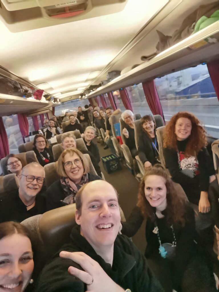 Nach den erlebnisreichen Stunden in Wiesbaden zeigte sich alsdann die Rückreise von der ruhigeren Seite. Sehr viele Bohèmes holten ein noch ein paar Stunden Schlaf nach oder vertrieben sich mit kleinen Spielen die Zeit bis zur Ankunft in Olten. Nach einem effizienten Ausladen machten sich die Bohèmes auf nach Hause, wo wir alle, bestimmt alle, füssehochlagernd auf dem Sofa die tollen Erlebnisse verarbeiteten und uns erholten. Es war eine fantastische Vorfasnacht in Wiesbaden.