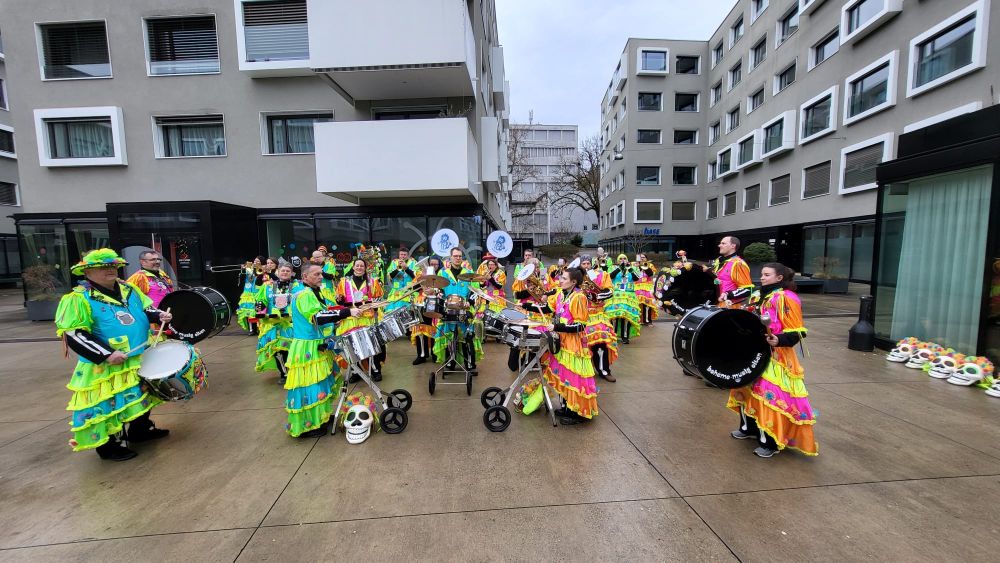 Nach der Ankunft und dem Beziehen der Zimmer und der Turnhalle, begaben wir uns ins Städtchen und liessen uns von den Fasnachtsklängen berauschen. Es dauerte jedoch nicht lange bis Ramona mit unserer ersten Trainingseinheit startete. Wir nutzten die Auftritte, um unsere neuen Stücke zu festigen und am Feinschliff zu arbeiten.